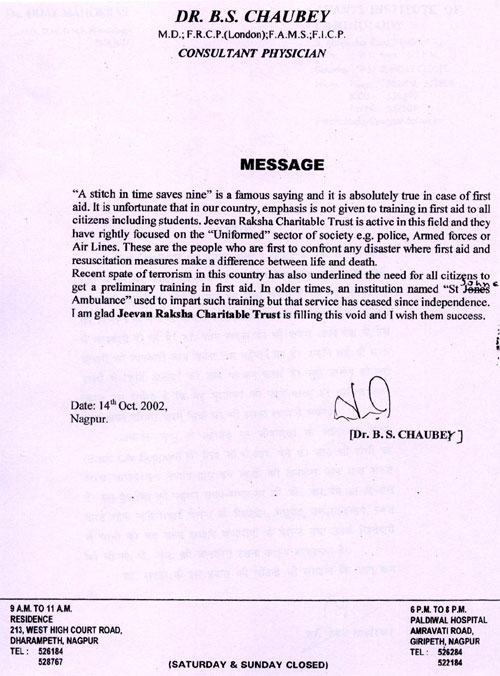 There are many Jeevan Raksha First-Aid providers in the state and out of state also to whom we congratulate and felicitate time to time for their humanitarian work.