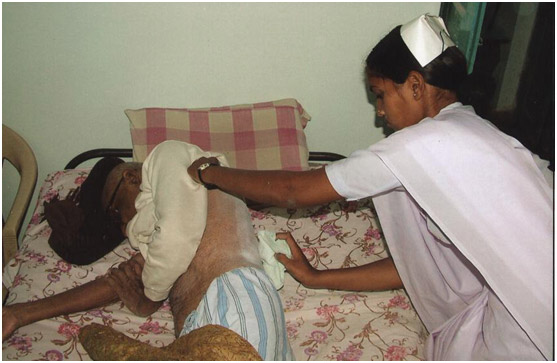 medical technician [nurse/ brother]. Care of a bedridden patient