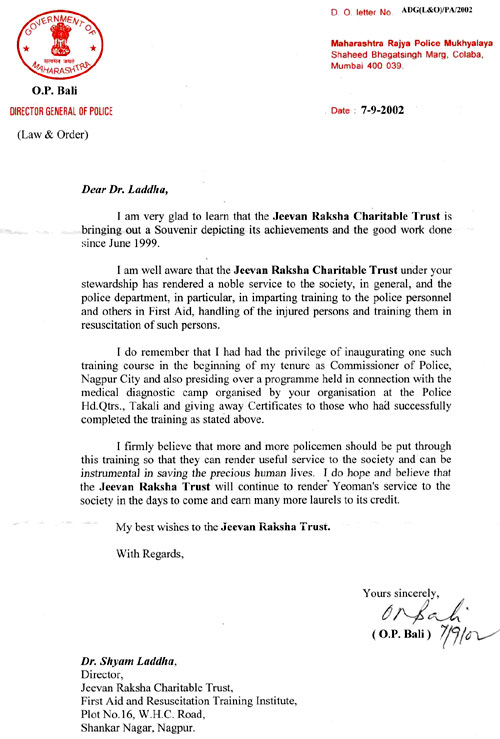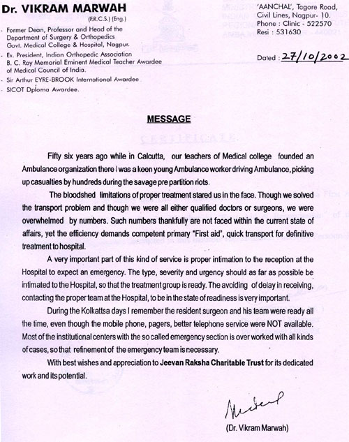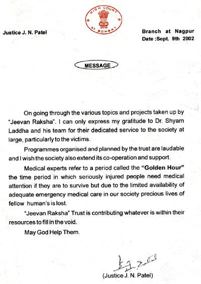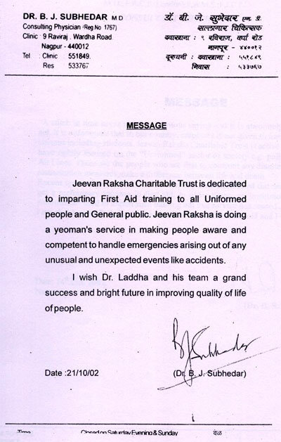 There are many Jeevan Raksha First-Aid providers in the state and out of state also to whom we congratulate and felicitate time to time for their humanitarian work.